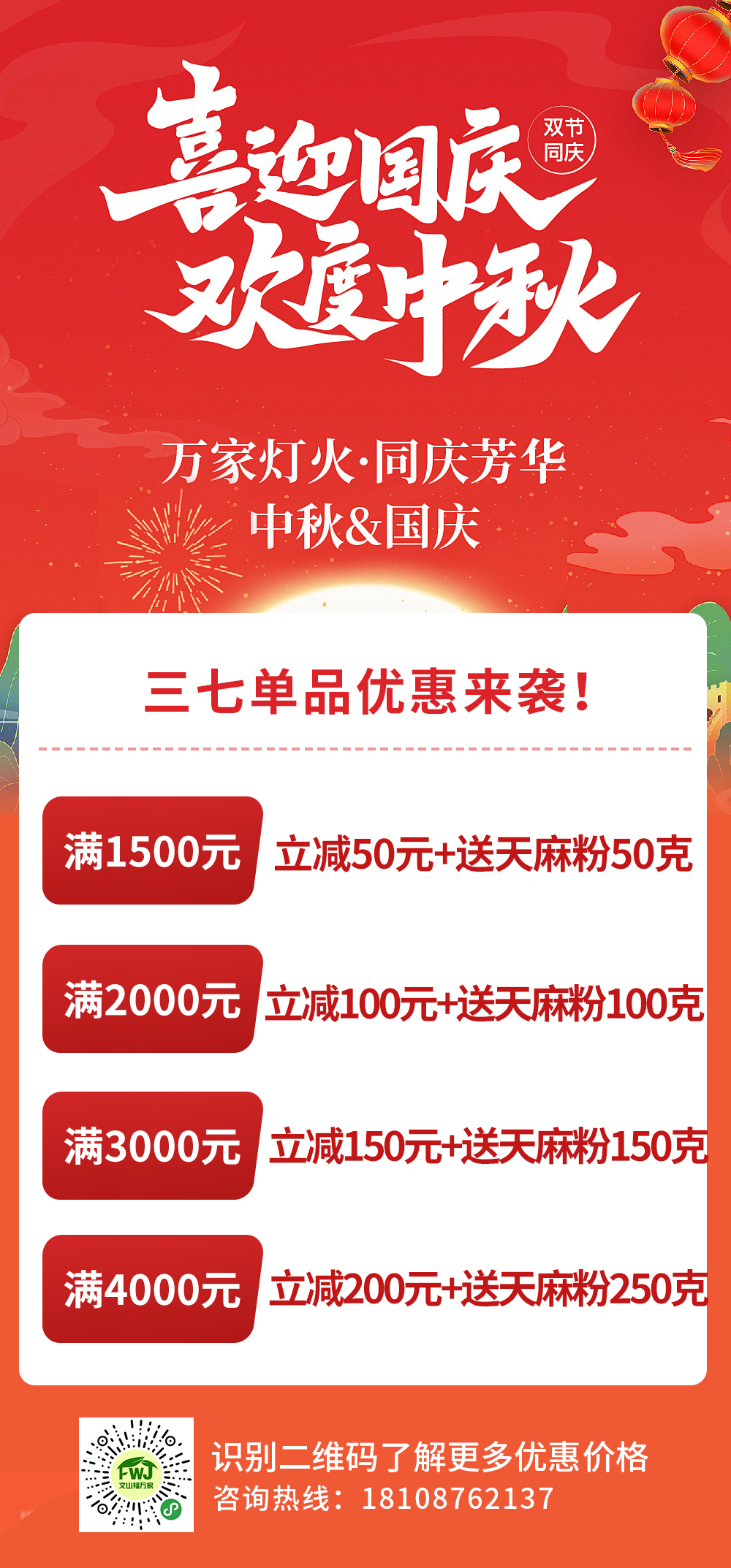 庆国庆迎中秋福万家三七双节特惠活动来袭