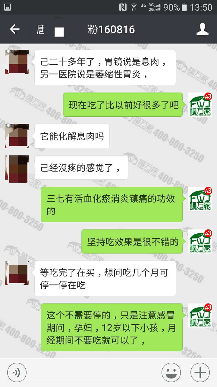 大连的唐女士之前检查出“胃息肉”已经有二十多年了,也有医院说是萎缩性胃炎。她吃了三个多月的三七粉,没有吃其它药,现在胃好很多了,已经没有疼的感觉了。三七粉对脾虚胃寒、慢性胃炎有很好的帮助,有类似情况的顾客不妨试试三七粉,也许和会唐女士一样有意向不到的效果。具体咨询:4008003250 微信:18187613538