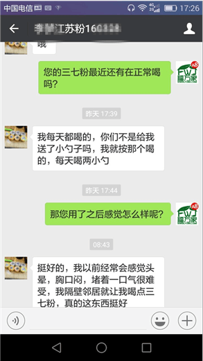 江苏李女士反映自己没有喝三七粉以前,经常会感到头晕,胸口闷,总感觉胸口堵着一口气,很难受,在邻居的建议下喝了几个月的三七粉,现在头晕和胸口闷的情况都有所改善。具体咨询:400-800-3250