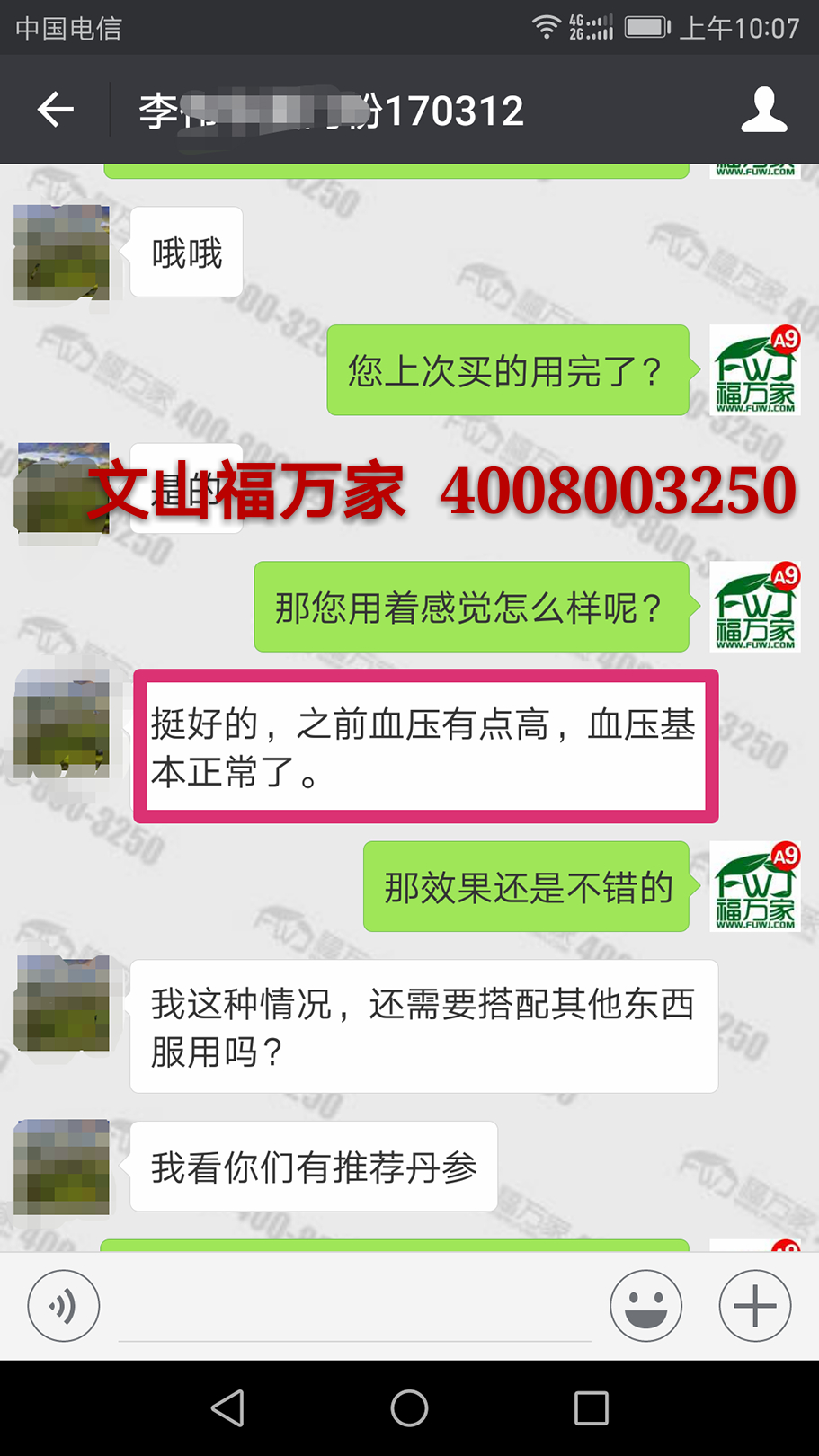 厦门的李先生平时身体还不错,就是血压有点高。因为觉得降压要有副作用,所以一直没有吃降压药,后来听别人介绍福万家三七粉,吃了四个多月,现在血压基本正常了,效果还不错。具体咨询:4008003250