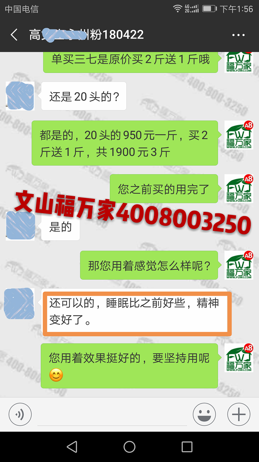 永州的高女士喝了一段时间的福万家三七,反馈睡眠比之前好了,精神也变好了许多。