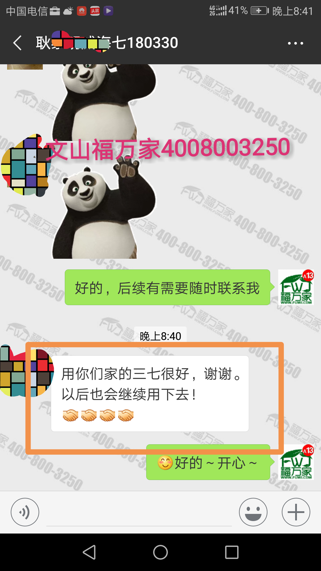 耿先生吃三七主要是保健,之前用过当地买的,但是质量不好。后经介绍用我们福万家的,反馈我们福万家三七质量很好,会继续用下去!