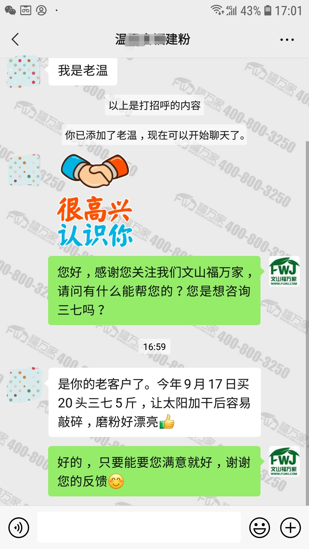 温先生是福万家老客户了,对三七质量一直很满意