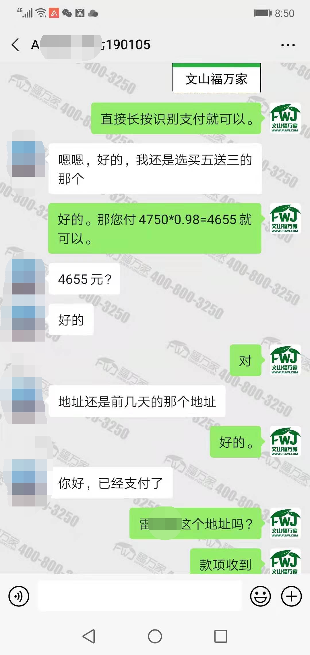 吴女士是我们老客户了,给家人买过很多次,中秋活动才买了8斤。收到后又帮家人订购8斤,反馈我们福万家三七很好,吃了有效果。