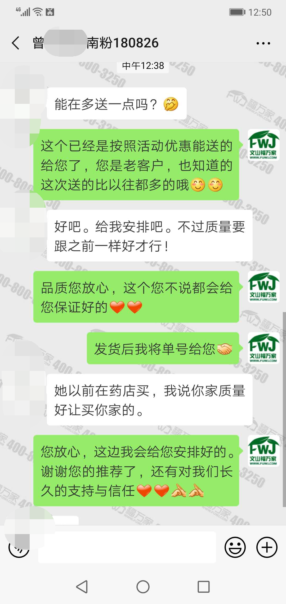 曾女士一直在吃福万家三七,之前反馈过头晕有改善,对我们品质很认可,所以推荐给了朋友。