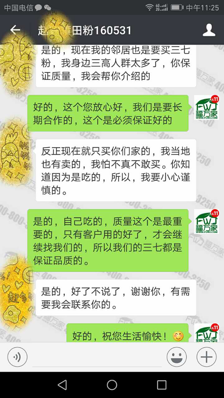 赵女士吃福万家三七粉有1年的时间了,今天反馈说:血压正常了,以前高压是142的,一直坚持吃福万家三七粉,现在血压已经在正常范围了,现在是125了,并且邻居看她有这么好的效果,现在也要开始吃三七粉了。具体咨询:4008003250