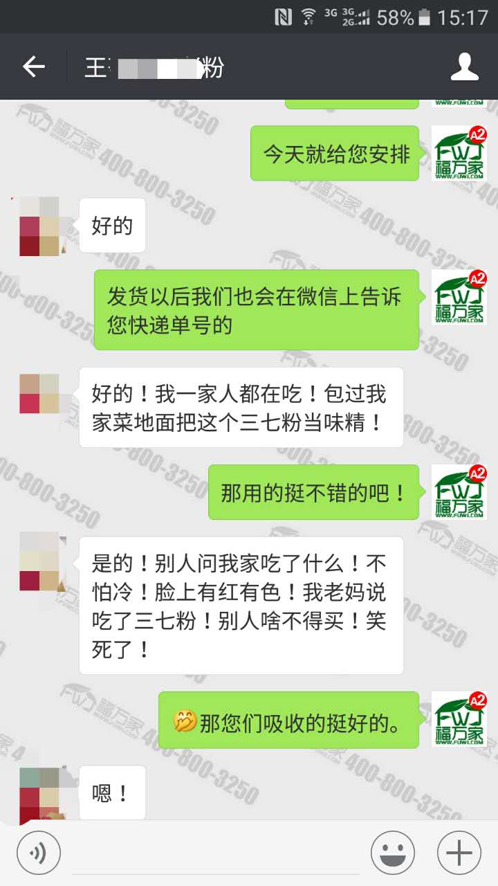 浙江的王女士,吃了我们三七粉快2年了,感觉挺不错,气色好了,冬天也不怕冷,周围的朋友也很羡慕。她母亲味觉很敏感,能吃出20头和30头的区别,平常做菜都会放一些,当味精用了,很喜欢三七粉的味道,用的效果也很好。具体咨询:4008003250