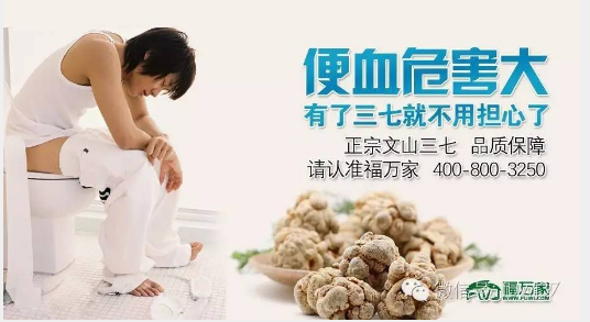 1.三七止血:福万家三七行瘀止血,消肿定痛。适用于吐血,衄血,血痢血崩,咳血、便血、尿血等出血症、三七中的三七素有止血的作用, 能明显的缩短出血和凝血时间。对于便血可起到一定的止血作用。