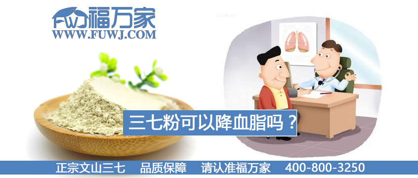 三七最有价值的就是它的活血功效,现代医学广泛用于治疗和预防各种心脑血管病,三七被称为“血管的清道夫”,更为重要的是福万家三七粉具有“止血不留淤,活血不伤新血”的特点,长期服用没有副作用。所以选择福万家三七粉是有助于降血脂的。 若想了解更多有关三七的知识,可以关注微信fuwj06在线咨询,谢谢!