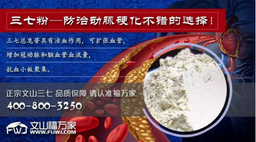 三七总皂苷具有活血作用,可扩张血管,增加冠动脉和脑血管血流量,抗血小板聚集。降低血液粘稠度,抑制动脉粥样硬化,溶解已形成的血栓并抑制血栓的形成,改善血液循环,改善心肌和脑缺血状况;同时,优质福万家三七粉还能降低动脉压,略减心率,增强心肌收缩力,减轻心脏负担,从而明显减少心肌耗氧量,起到抗心律失常的作用。