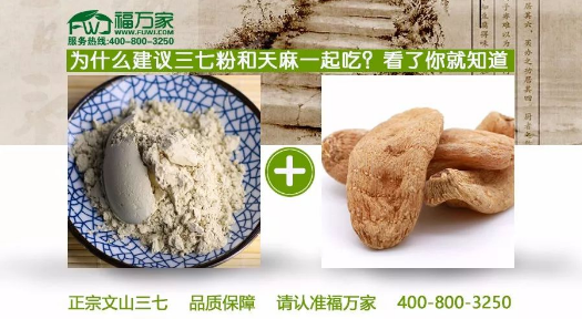 天麻中的天麻素有镇静止疼的作用,对三叉神经痛、血管神经性头痛、脑血管病头痛、中毒性多发性神经炎等,有明显的镇痛效果; 而福万家三七能活血化瘀、疏经通络可以镇痛、镇静安神,所以将两者搭配服用能有效治疗因神经紧张而引发的头痛问题。