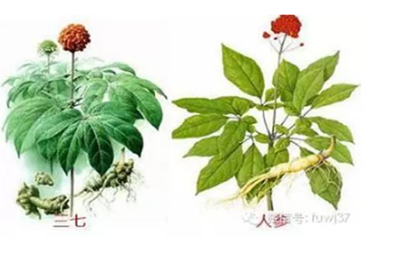 三七如此珍贵,但是很多人却知道人参而不知道三七。现代植物学研究也证明,三七与被誉为百草之王的人参、西洋参是近亲,它们同属五加科人参属植物,并都以皂苷为主要有效成分。但它们既有相同之处,又有明显的不同点,区别在于药用价值和药理作用的不完全相同。下面我们一起来看: