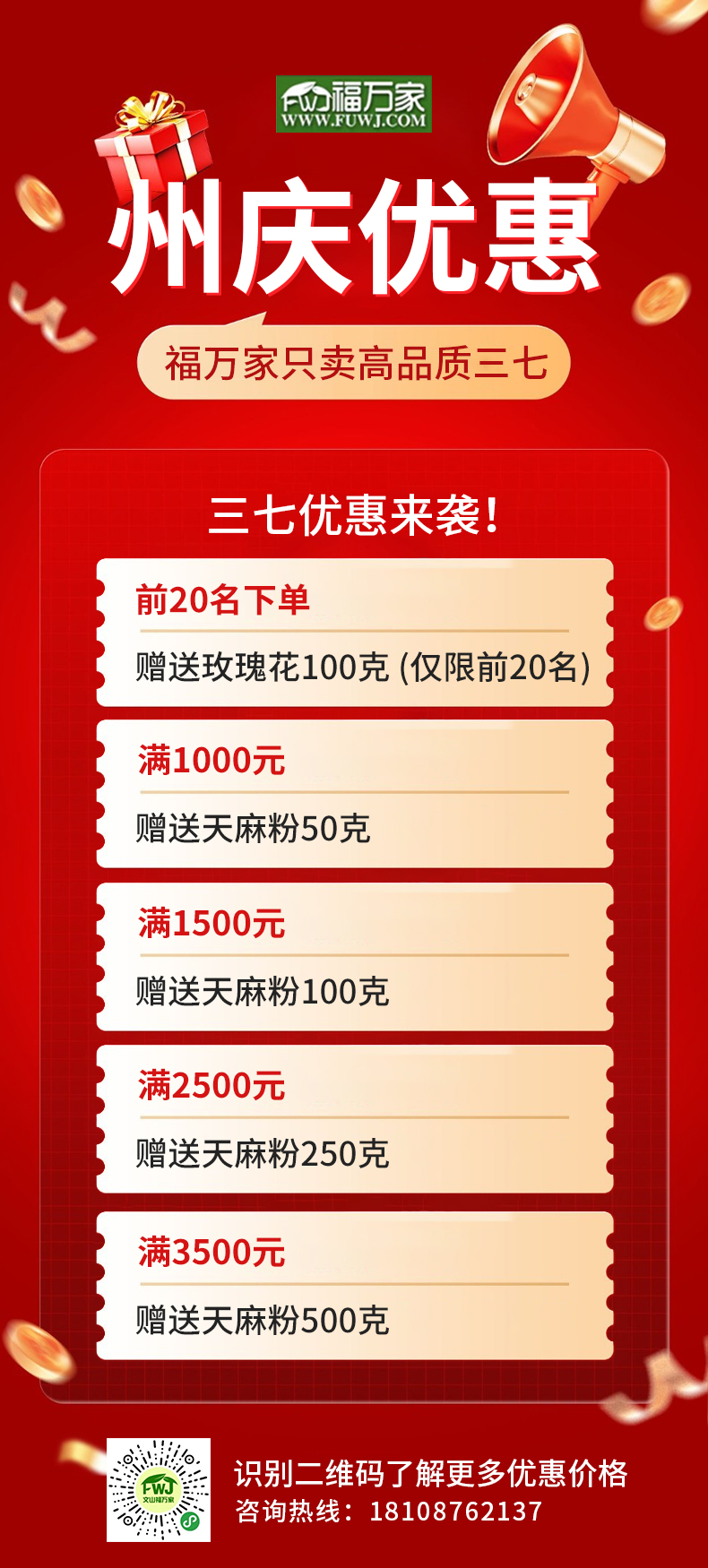 活动期间,购道地文山福万家三七,即送天麻粉,多重好礼,把健康与心意一起带回家!